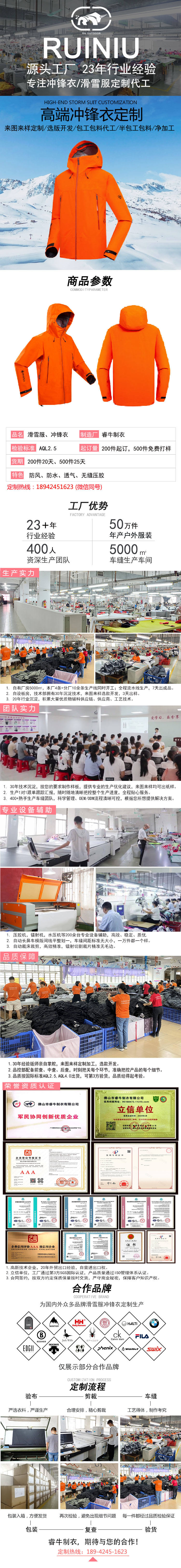 持續23年專注沖鋒衣、滑雪服定制加工廠家